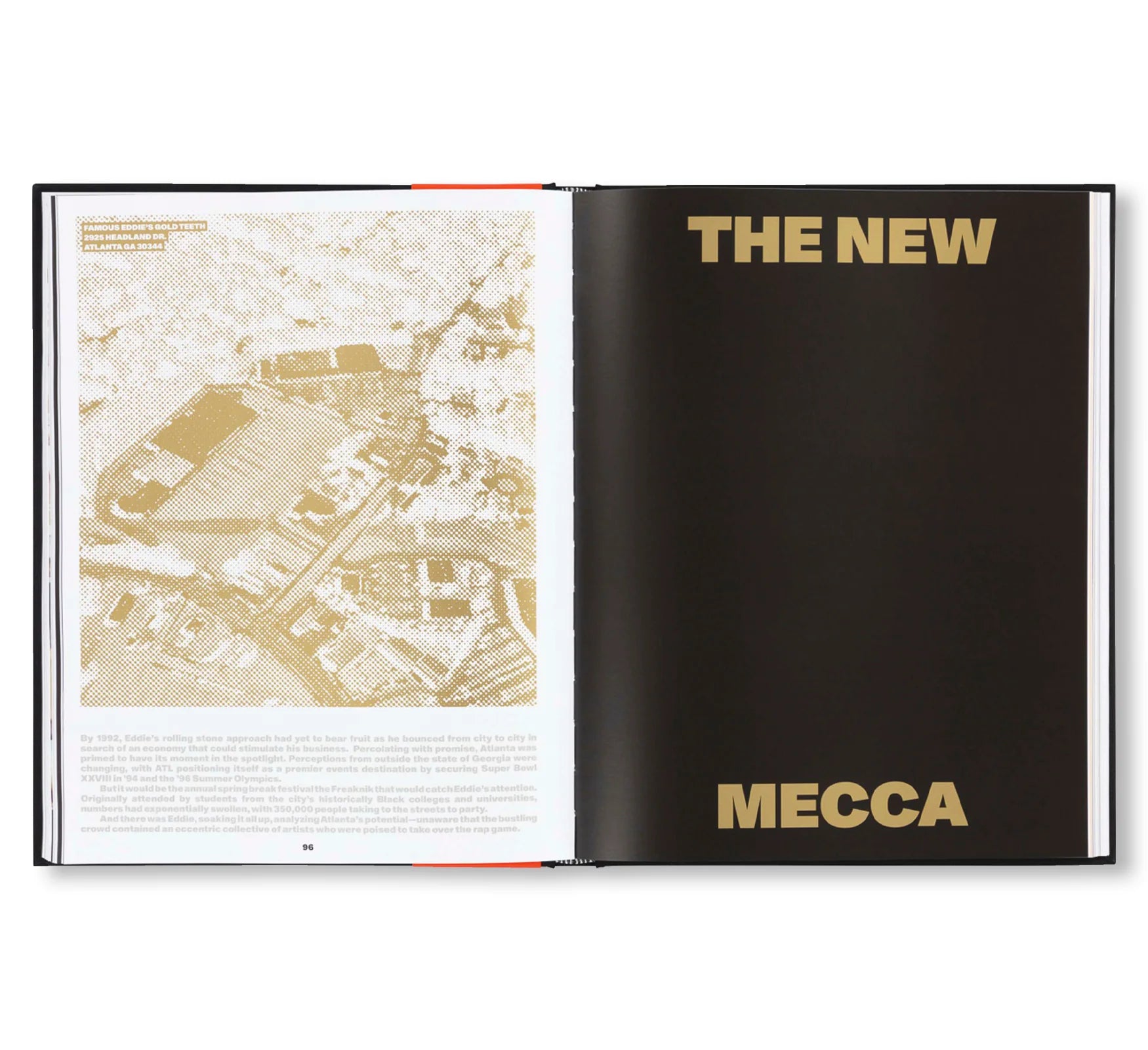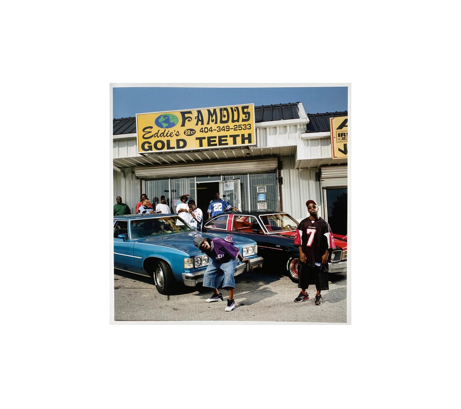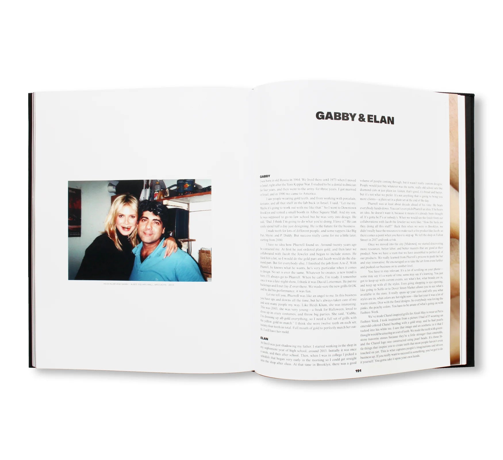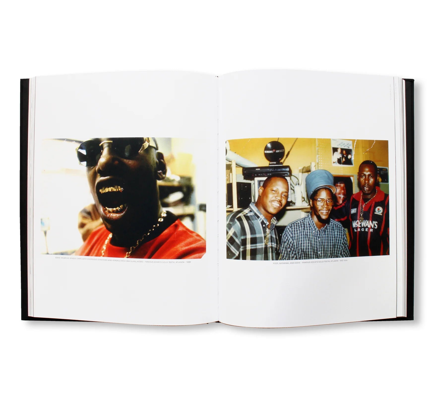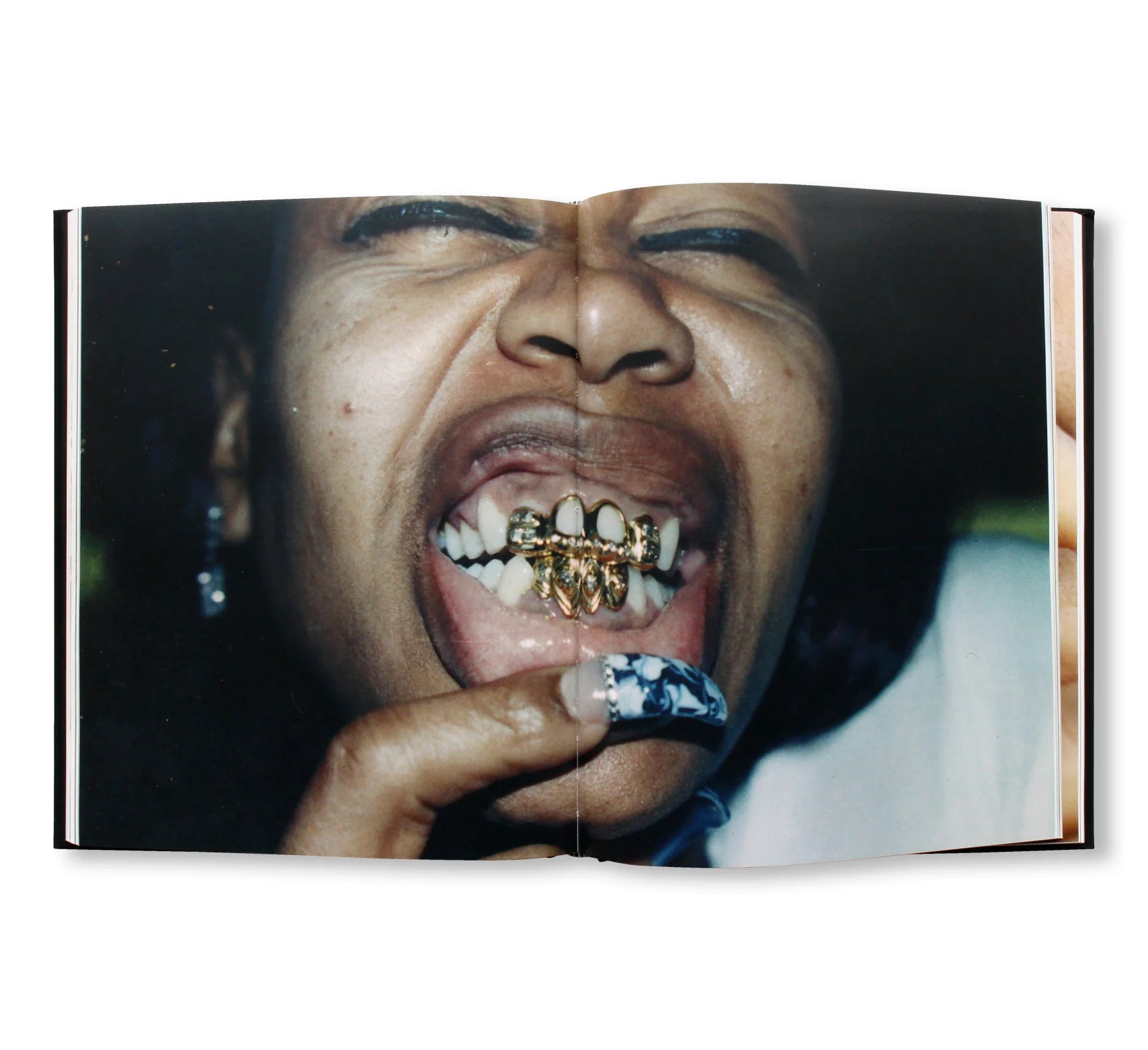 アトランタの「フェイマス・エディーズ・ゴールド・ティース(Famous Eddie’s Gold Teeth)」の看板の前で撮られた一枚、当時のヒップホップ界の功労者は皆揃って客であった、NYを拠点に活動するグラフィティアーティスト「シャツキングフェイド(Shirt King Phade)」とドーン(Dawn)が写る一枚、ギャビー・イーラン・ジュエリー(Gabby Elan Jewelry)によるデザインが施されたグリルズ「Exotica」、タイラー・ザ・クリエイター(Tyler, The Creator)の下歯、本書の至る所に現れる「この世の奇才」ナズ(Nas)とケリス(Kelis)が写る一枚。これらのイメージで語る視覚的情報、テキストで綴られる鮮やかな物語など、本書にはその世界のすべてが揃っている。