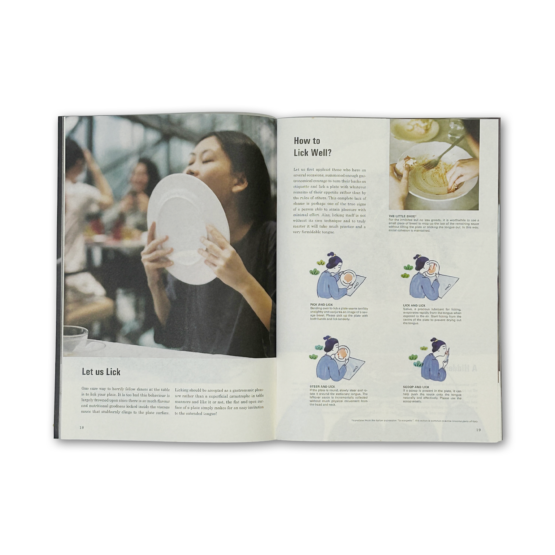 毎日使うものの、意識して観察されることの少ない皿。その起源から、それぞれの部位の働きや機能、正円・楕円・四角など形状の違う皿に何を載せるのか、なぜお皿を舐めてはいけないのか(そして良い舐め方についての指南も!)、社交の場としての食事における皿の役割、皿の保管方法や洗うときの感覚についてなど、皿にまつわるあらゆる体験が、彼ららしい生真面目かつユーモラスな言葉で記録されています。全文日本語訳付き。