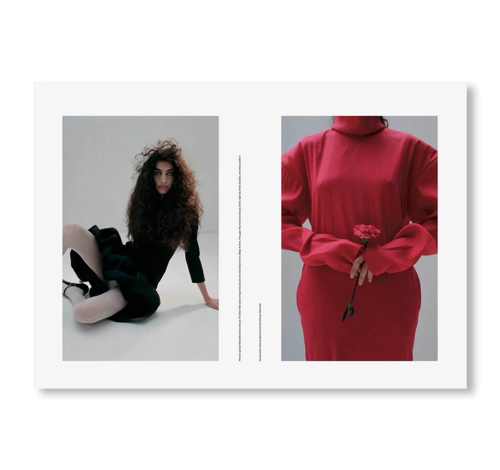 The issue also carries a fashion insert with Simond again behind the camera, in partnership with stylist Charlotte Collet. It is a counterpoint to the main portfolio. If the wedding dresses tremble with ritual and disassembly, the insert is charged with youthful insouciance.
