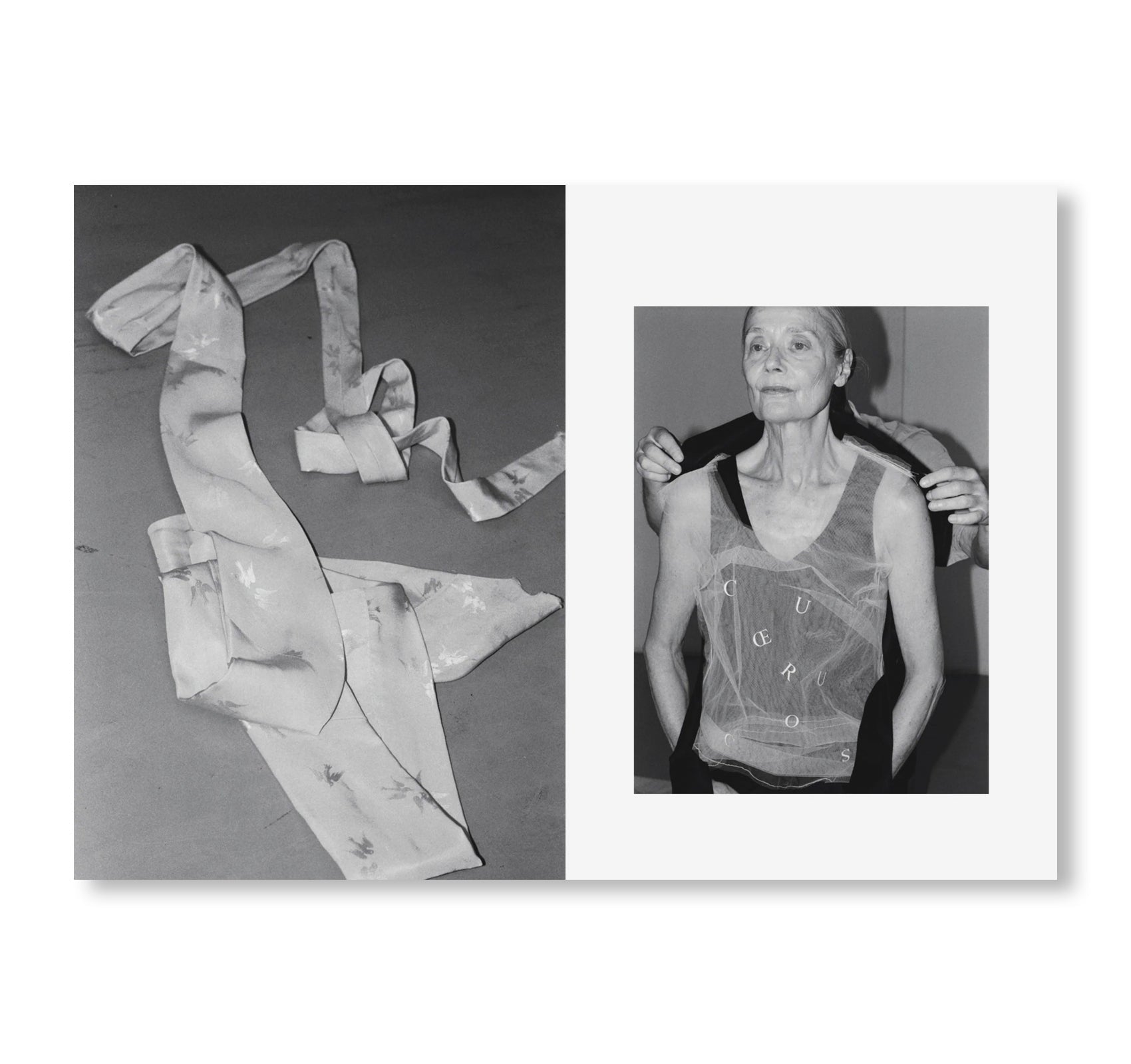 ページに残るのは二つ。サイヤールの表意の記録と、サイモンド自身の創意である。彼女のイメージは、布を一枚重ねるようにパフォーマンスに重なり、溶け合う。