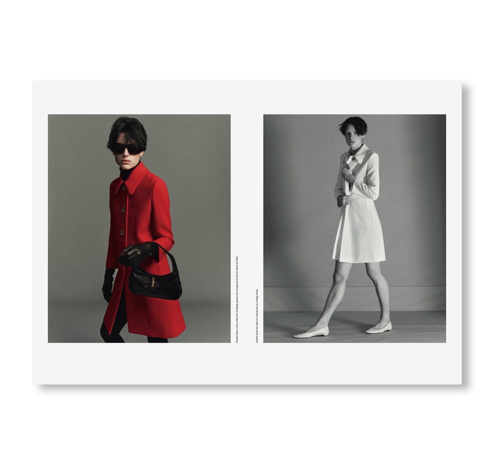 メイン・ポートフォリオがファッションの構造に焦点を当てる一方、インサートページではより即時的な体験へと視点が移る。フォトグラファー、ブルース・ウェーバー(Bruce Weber)のレンズを通して捉えられた、ブランド、「セリーヌ(Celine)」におけるマイケル・ライダー(Michael Rider)による初のコレクションである。