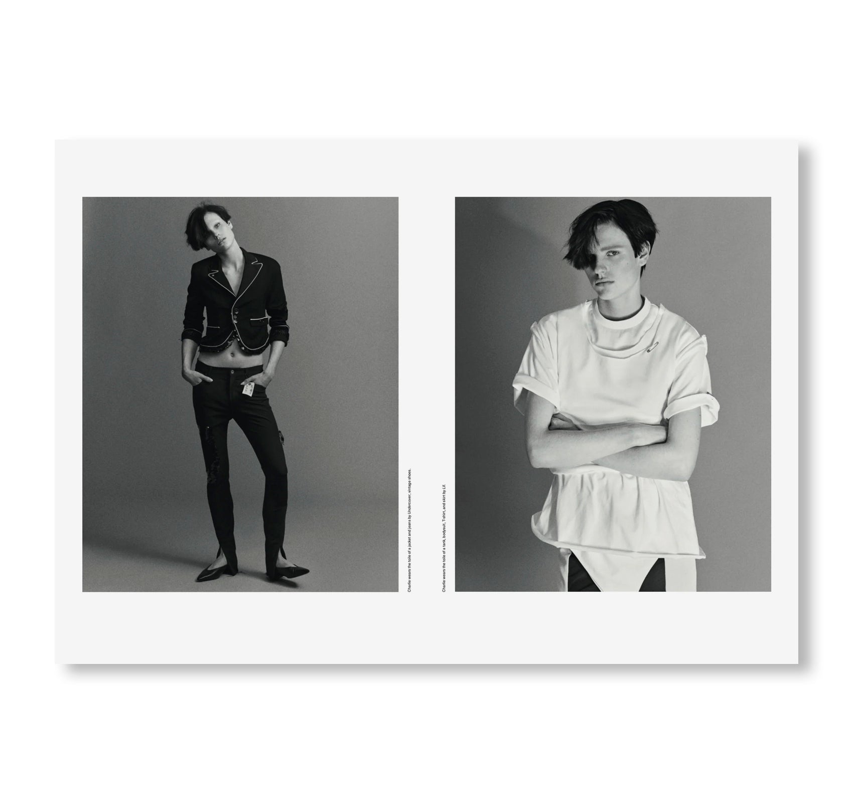 The houses shared these beginnings to her, and she transformed them into something that feels both raw and deliberate. She built a punk-lean wardrobe from these unfinished forms, worn by Charlie Jones and photographed by Mark Kean in a meeting of presence and imagination.