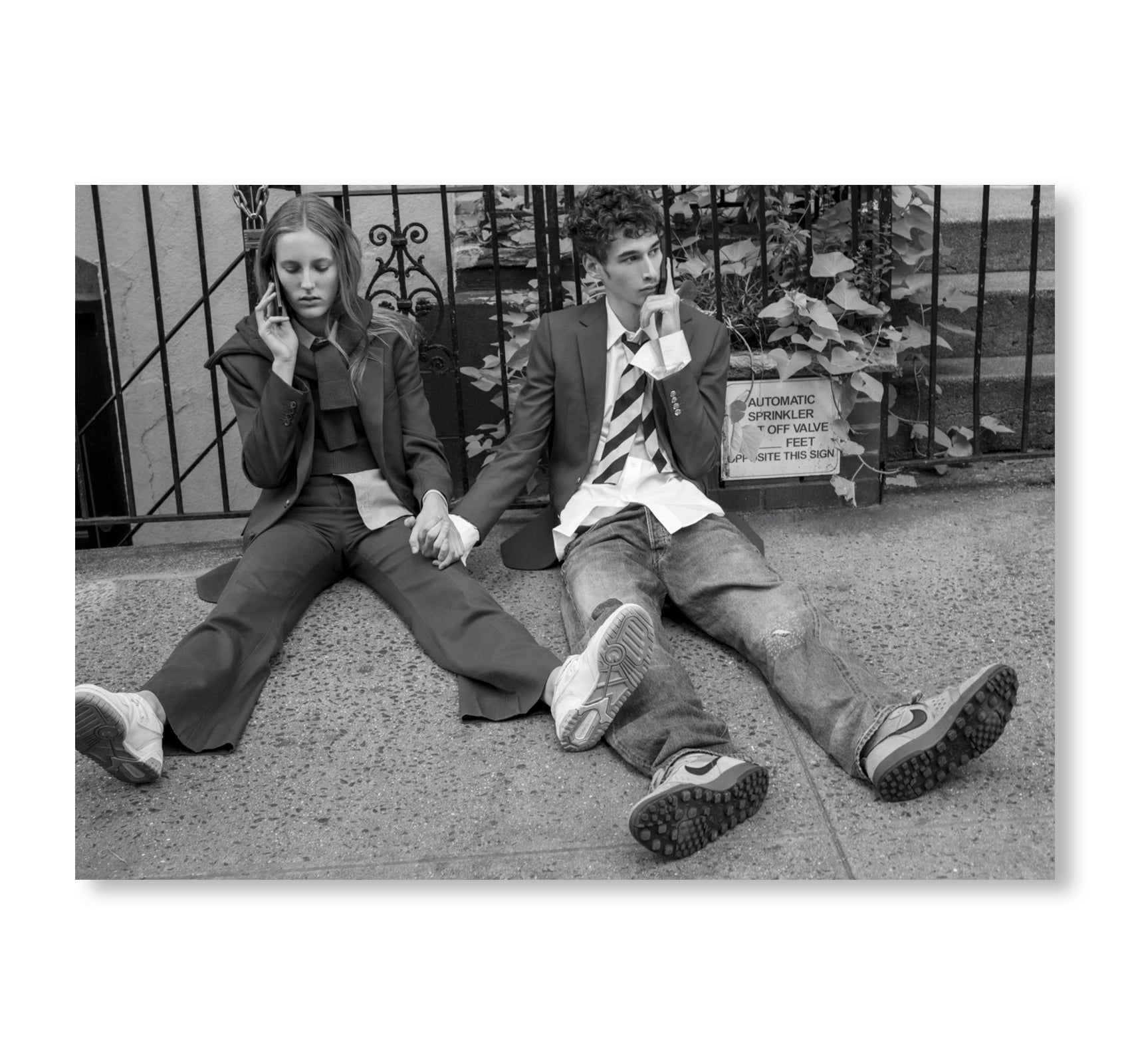 この撮影でウェーバーは、緩やかに集まったティーンエイジャーたちに自由な振る舞いを委ねた。彼らは好みの服を選び、自分自身のワードローブと組み合わせ、指示を受けることなく独自の服の言語を編み上げていく。ポートフォリオは、そうした空気感の記録となっている。若さの高揚、気負いのない自信、着飾ることの素朴な喜び。街を漂い、互いを見つけ、行き先を定めることなく、時間が静かに流れていく様子が捉えられている。