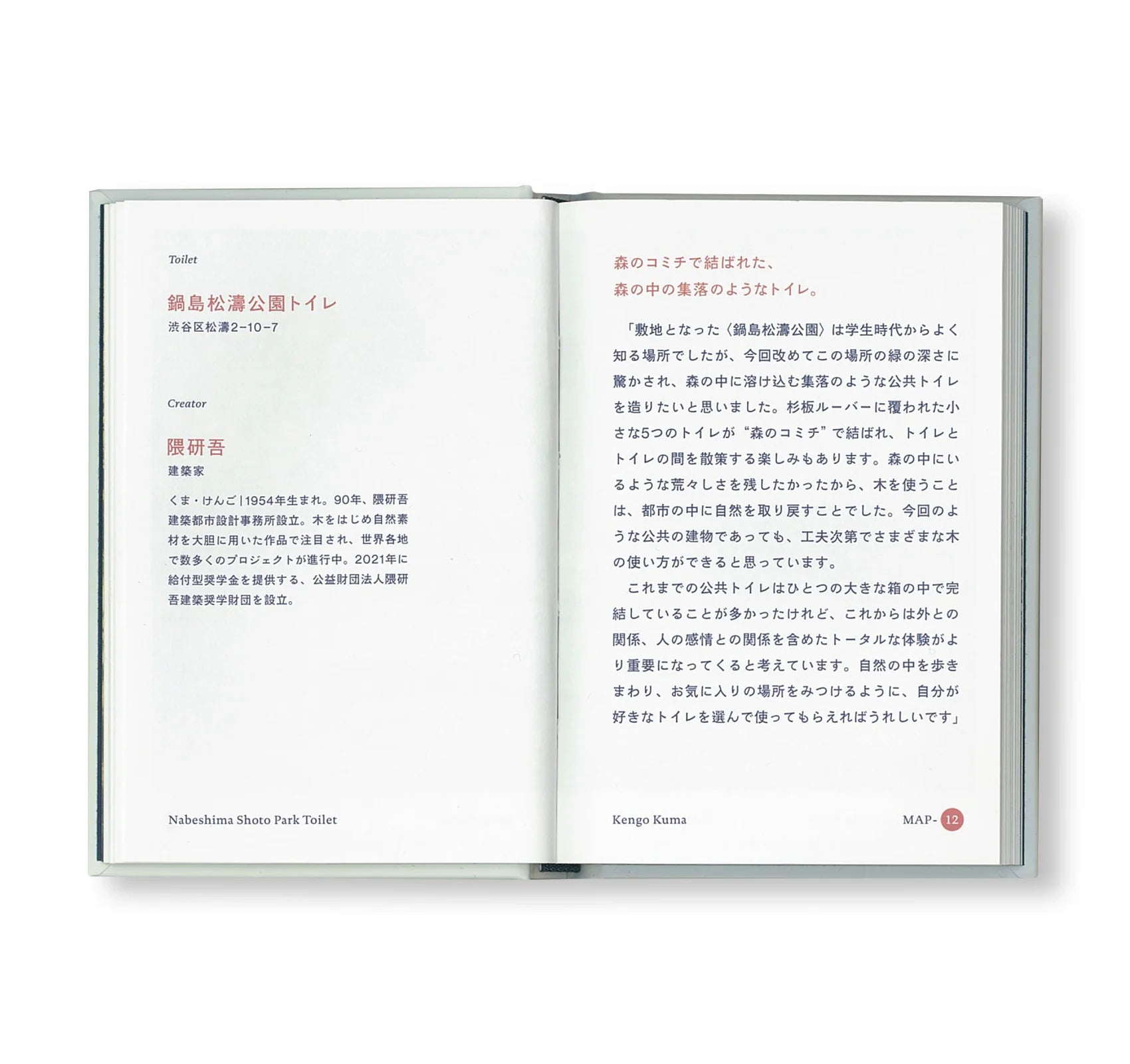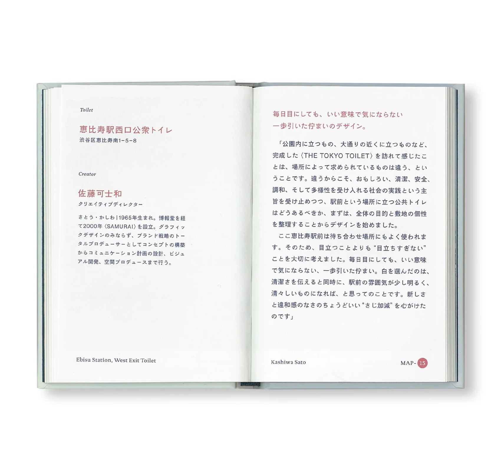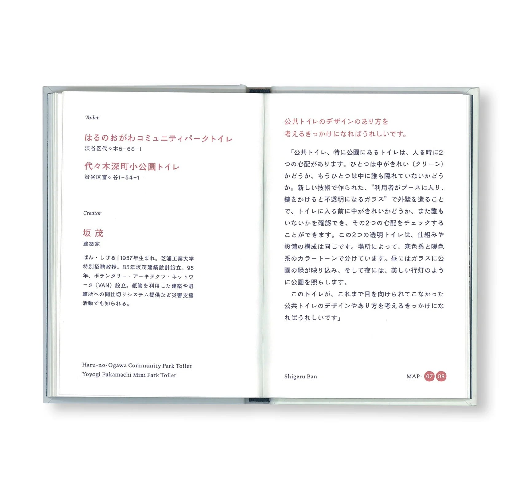 街なかの公共トイレを誰もが驚く、新しい気づきの場へと刷新するべくスタートした〈THE TOKYO TOILET〉プロジェクトをまとめた写真集のようなガイドブック。