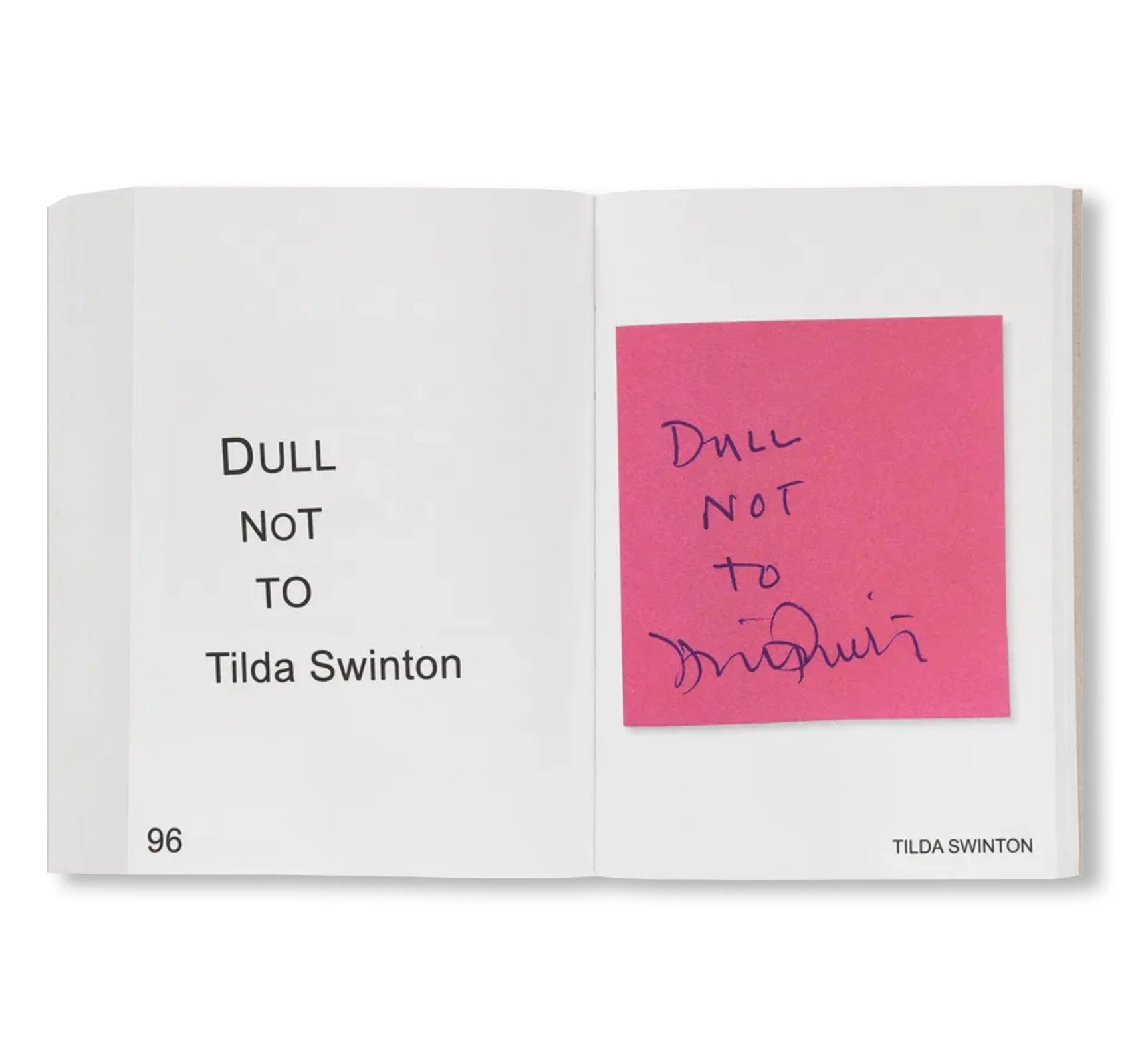 制約がないことで知られるこのプロジェクトは、メモが載るゆったりとした贅沢な構成と「インスタグラム」の投稿のスピード感が融合した一冊に仕上がっており、世界で最も偉大な現代美術家たちの、その日1日で抱いた考え、夢、ドローイング、物思いにふけった時の言葉、ジョーク、引用、質問、答え、詩、洒落が書かれたポストイットをふんだんに集めている。2023年に出版された第1巻『REMEMBER TO DREAM!』に続き、本書もオランダ人グラフィックデザイナー、イルマ・ボーム(Irma Boom)が装丁を手がける。